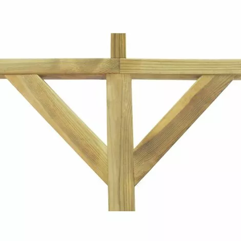 Hergestellt aus hochwertigem, grün-imprägniertem Kiefernholz, ist diese Pergola sehr robust, langlebig und verrottungsfest. Sie können das Dach mit Polycarbonat-Platten bedecken, wodurch das Schrägdach der Pergola das Abfließen des Wassers ermöglicht.